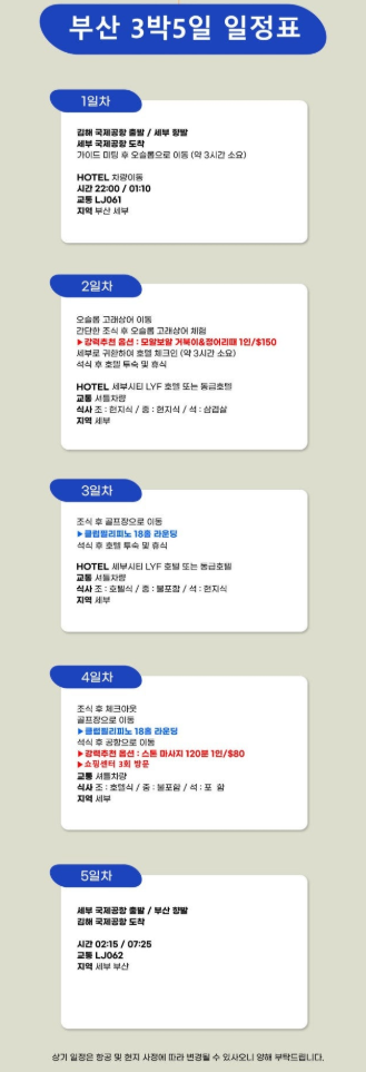 *부산출발기준이며 인천/대구출발 별도문의